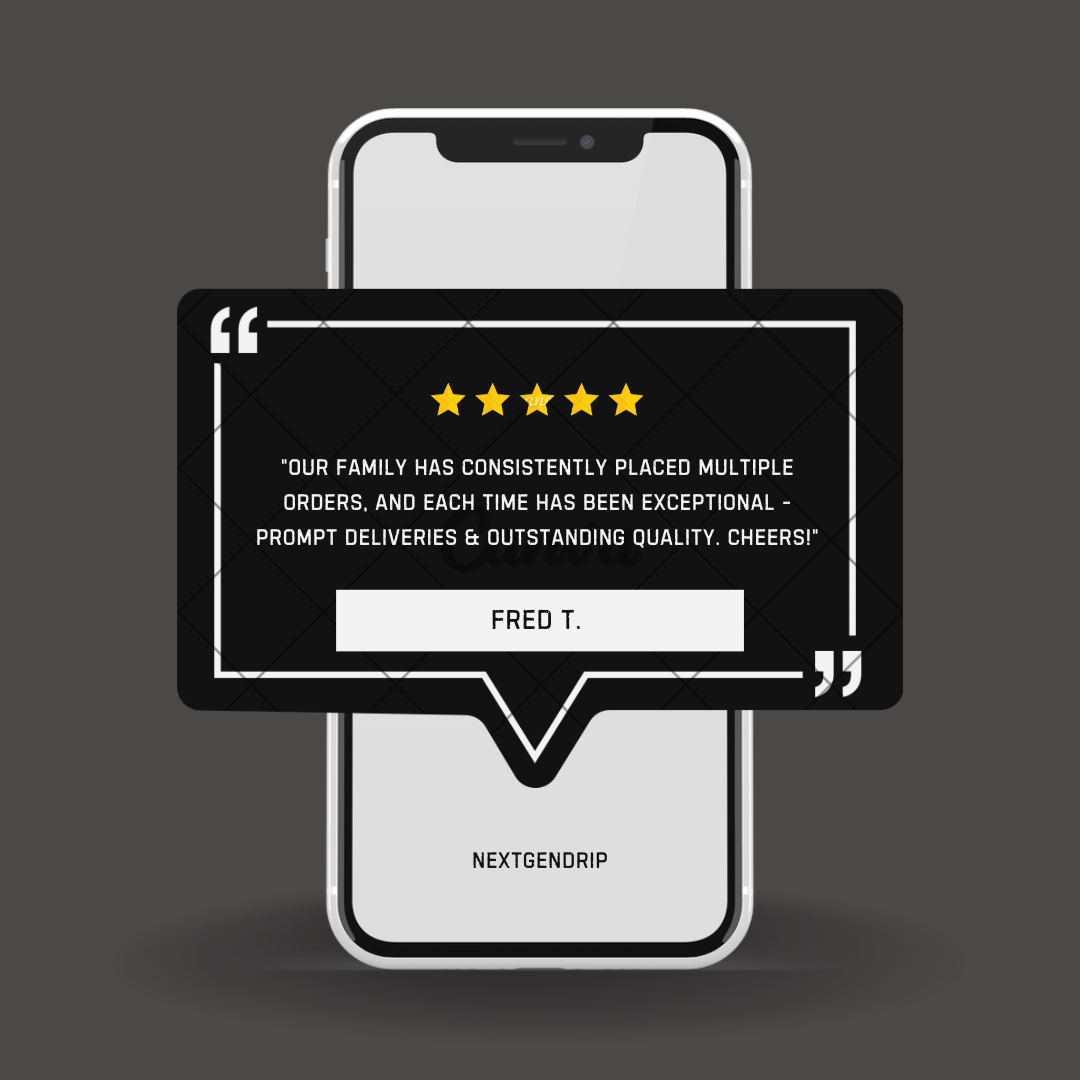 We're here to help! You can reach our customer support team via email at info@nextgendrip.com or through our online contact form in the bottom right corner of this page. Whether you have questions about your order, need assistance with product inquiries, or require help with any other issue, our dedicated team is ready to assist you. We strive to respond to all inquiries promptly, so please don't hesitate to reach out to us.